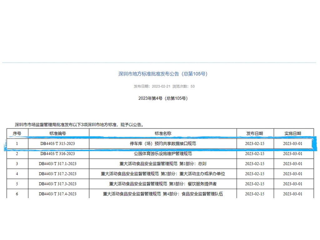信路通參編的深圳市地方標準《停車庫(場)預約共享數據接口規范》正式實施!