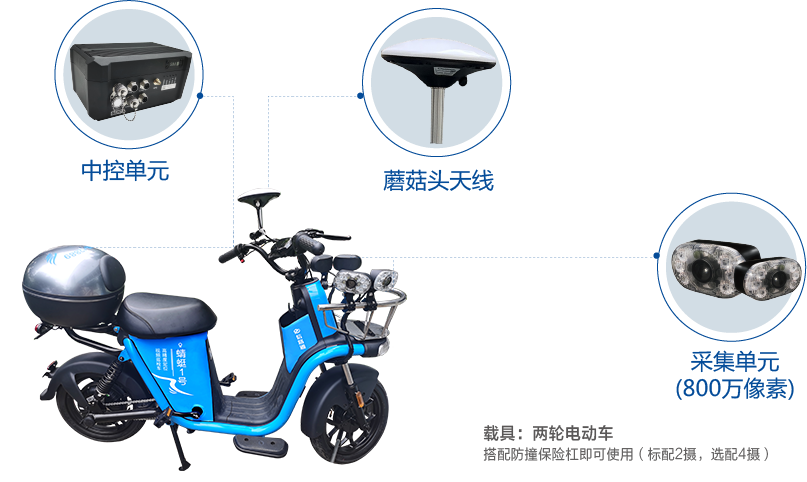 雙攝款為標(biāo)配款,該款兩個(gè)前端采集單元安裝在兩輪巡檢車右側(cè),其中一個(gè)前端視角向右前方(簡稱右前攝),一個(gè)前端視角向右后方(簡稱右后攝)。可用于巡檢車右側(cè)泊位狀態(tài)檢測及識別,適應(yīng)大部分路內(nèi)停車場景。