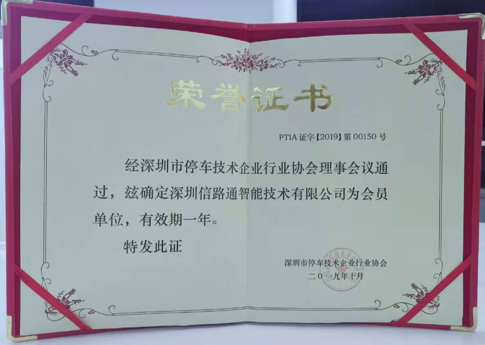 祝賀信路通加入深圳市停車(chē)行業(yè)協(xié)會(huì)